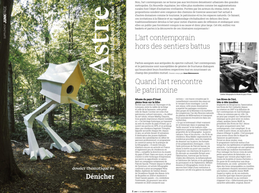 Article, Revue Junkpage #6, réseau des arts visuels en Nouvelle-Aquitaine, été 2022.