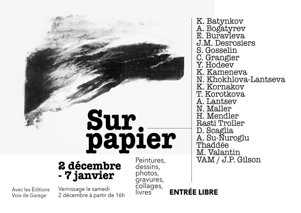 Exposition collective, Sur papier, Galerie De l’Est, avec Les Editions Voix de Garage, Compiègne, FR, 2 décembre – 21 janvier 2024.