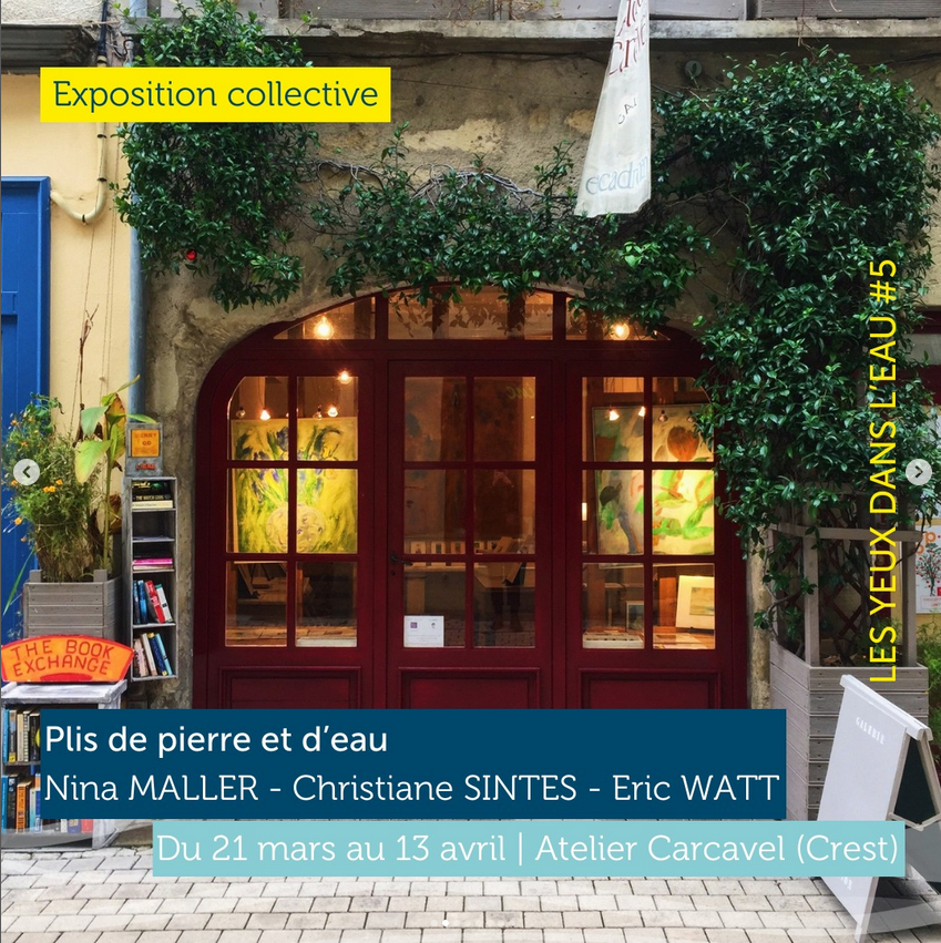 Exposition collective, Plis de pierre et d’eau, Atelier Carcavel, dans le cadre du festival international du film de rivière, Crest, FR, 21 mars – 13 avril 2024