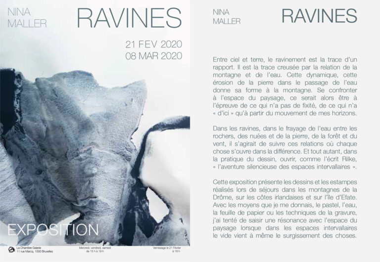 Exposition, Ravines, La Chambre Galerie, Bruxelles, BE, 21 février – 8 mars 2020. Lire la suite » octobre 13, 2025